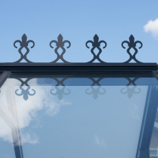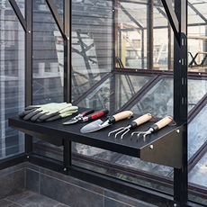 - Полки для инструментов и декоративное навершие. Повышают функциональность и завершают продуманный внешний вид теплицы, подчёркивая её статусную модель.