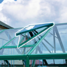- Две форточки в крыше (форточный блок). Верхнее расположение усиливает естественную вентиляцию, внутри поддерживается стабильный микроклимат без перегрева.